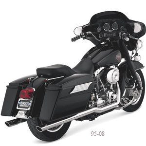 The ultimate complete system for late-model touring machinesArmed with full-coverage, 220 deg wrap, 2-1/2" heat shields that are essentially blue-proof for long-lasting styleHeat shields surround 1-3/4" headpipes that flow into 2-1/8" muffler bodiesTrue 2-into-2 system eliminates factory crossover and provides a clean, classic dresser look down both sides of the bikeSpecially tuned baffles produce the deep Vance & Hines exhaust note with optional quiet baffles also availableSuperior fit and an unrivalled finish when compared to other systemsMeticulously finished with straight-cut billet end capsRemovable baffles and all mounting hardware includedMade in the USAThis item fits the following models: 1995-2006 Harley Davidson FLHR Road King1998-2006 Harley Davidson FLHRCI Road King Classic1996-1997 Harley Davidson FLHRI Road King2000-2006 Harley Davidson FLHRI Road King2004-2006 Harley Davidson FLHRS Road King Custom2004-2006 Harley Davidson FLHRSI Road King Custom1995-2006 Ha rley Davidson FLHT Electra Glide Standard1995-2005 Harley Davidson FLHTC Electra Glide Classic1996-2006 Harley Davidson FLHTCI Electra Glide Classic1995-1997 Harley Davidson FLHTCU Electra Glide Ultra Classic1995-2006 Harley Davidson FLHTCUI Electra Glide Ultra Classic2003-2006 Harley Davidson FLHTI Electra Glide Standard2006 Harley Davidson FLHX Street Glide2006 Harley Davidson FLHXI Street Glide1995 Harley Davidson FLTCU Tour Glide Ultra Classic1996 Harley Davidson FLTCUI Tour Glide Ultra Classic1998-2002 Harley Davidson FLTR Road Glide1998-2006 Harley Davidson FLTRI Road Glide